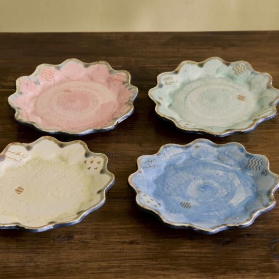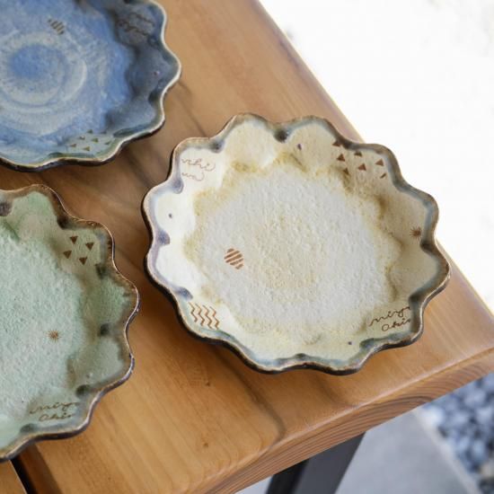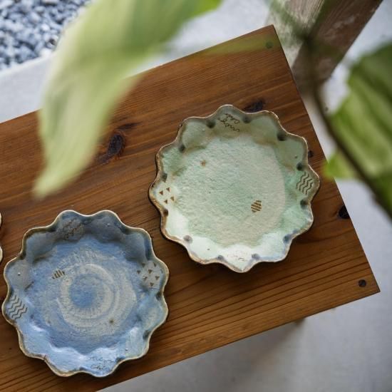 金城和樹さんの作る器は、島に吹く風、青い海、色とりどりの草花など、伊江島の自然を閉じ込めたよう。穏やかで愛らしい印象の中に、生命の息吹や力強さを感じる作品です。
