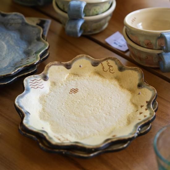 確かな経験に裏打ちされた技術を用いながら、いつも新しいこと・楽しいことを提案してくれる金城さんのやちむん。ユニークさを纏いながらも、使う人の心地よさを考えた日々の暮らしに寄り添うデザイン。和食も、洋食も、スイーツでも。様々な料理に合う、汎用性の高さも魅力の一つです。
