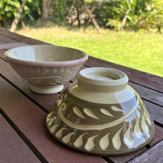 丁寧にひとつひとつ手彫りで施された模様から、作り手の想いと温かみを感じる器たちです。
